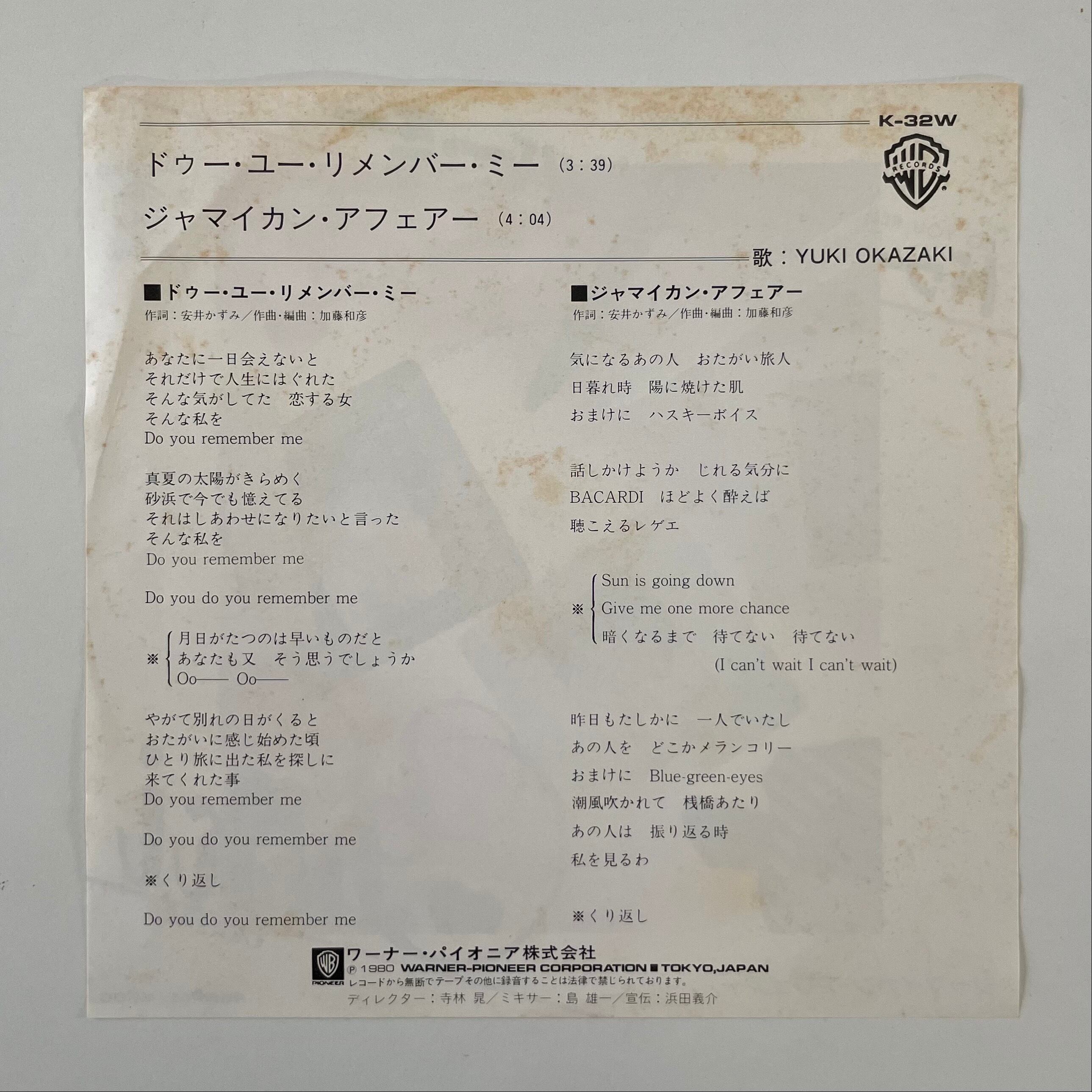 岡崎友紀 / ドゥー・ユー・リメンバー・ミー/ジャマイカン・アフェアー(7")
