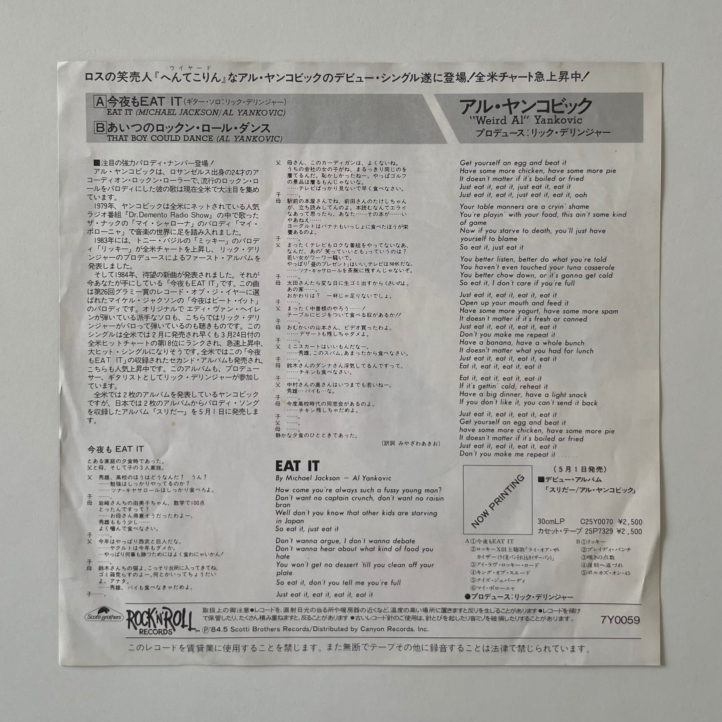 アル・ヤンコビック / 今夜もEAT IT(7")