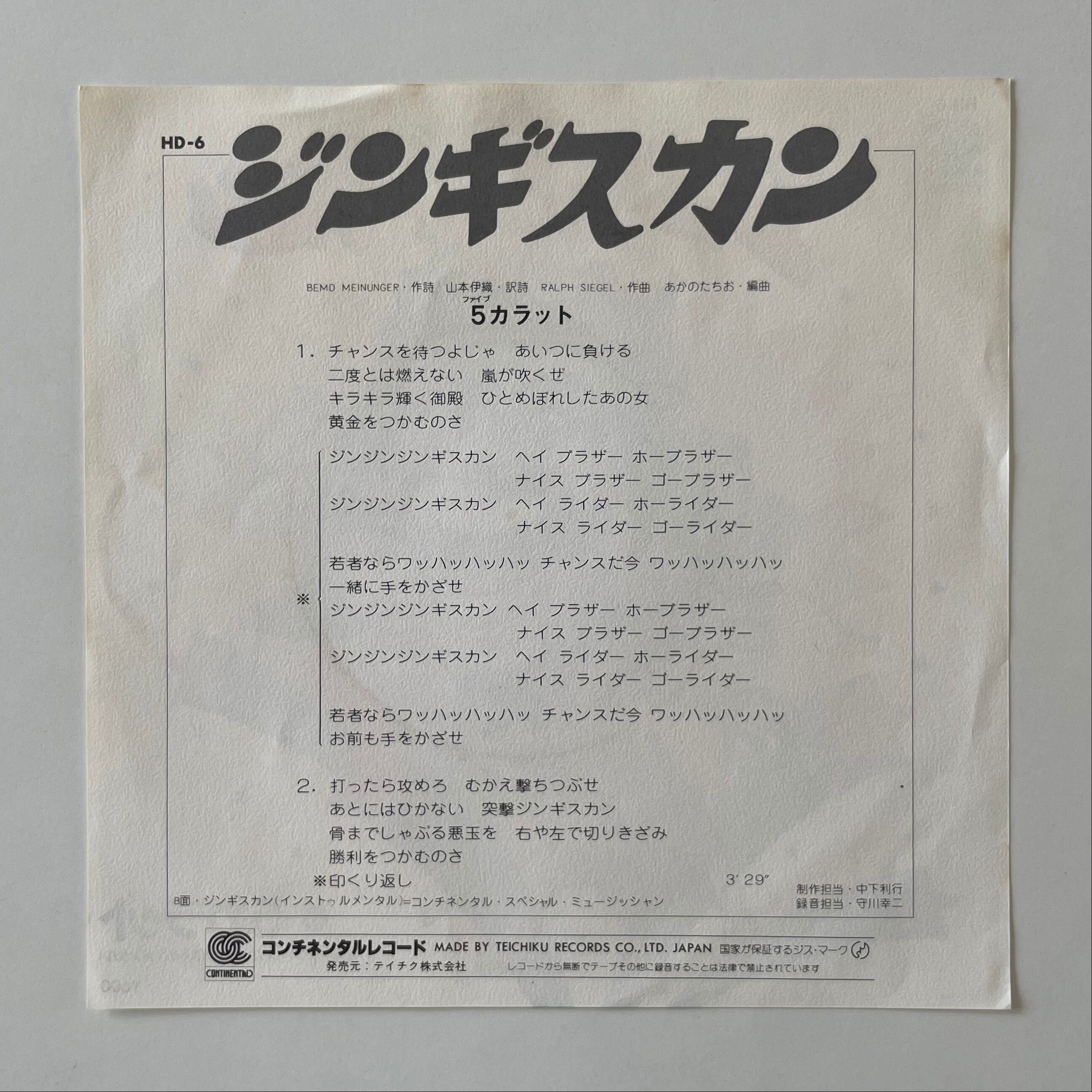 5 カラット / ジンギスカン(7")