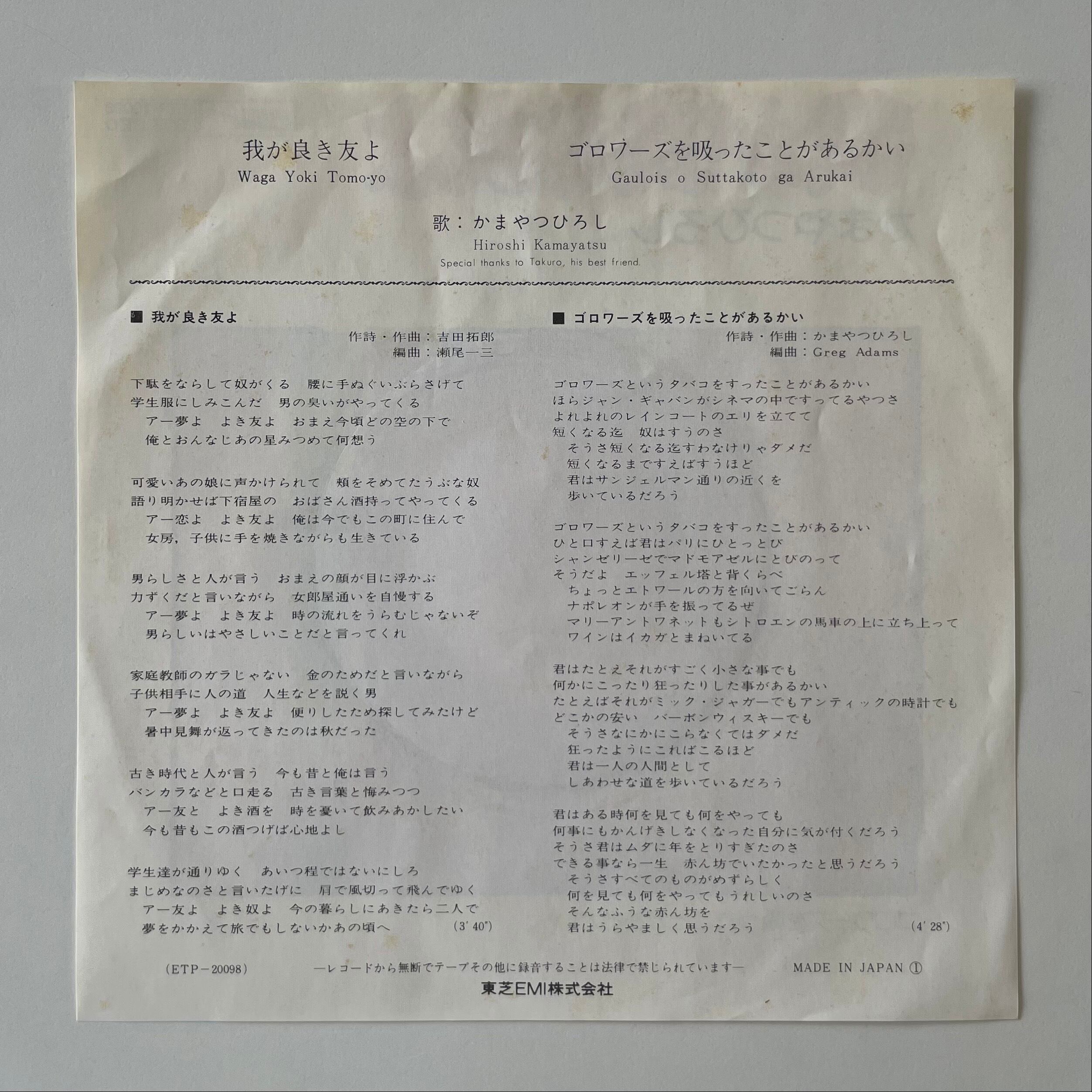 かまやつひろし / 我が良き友よ(7")
