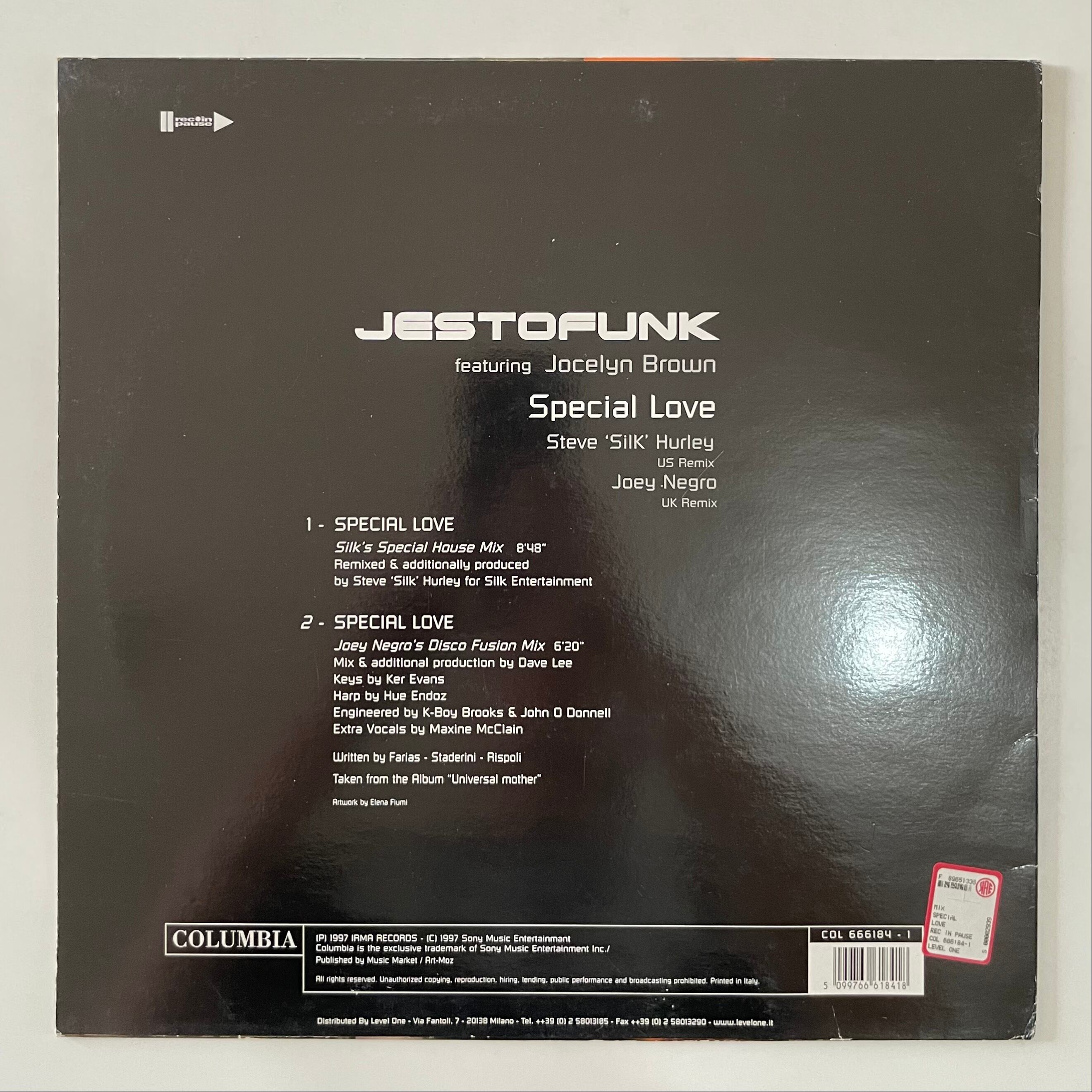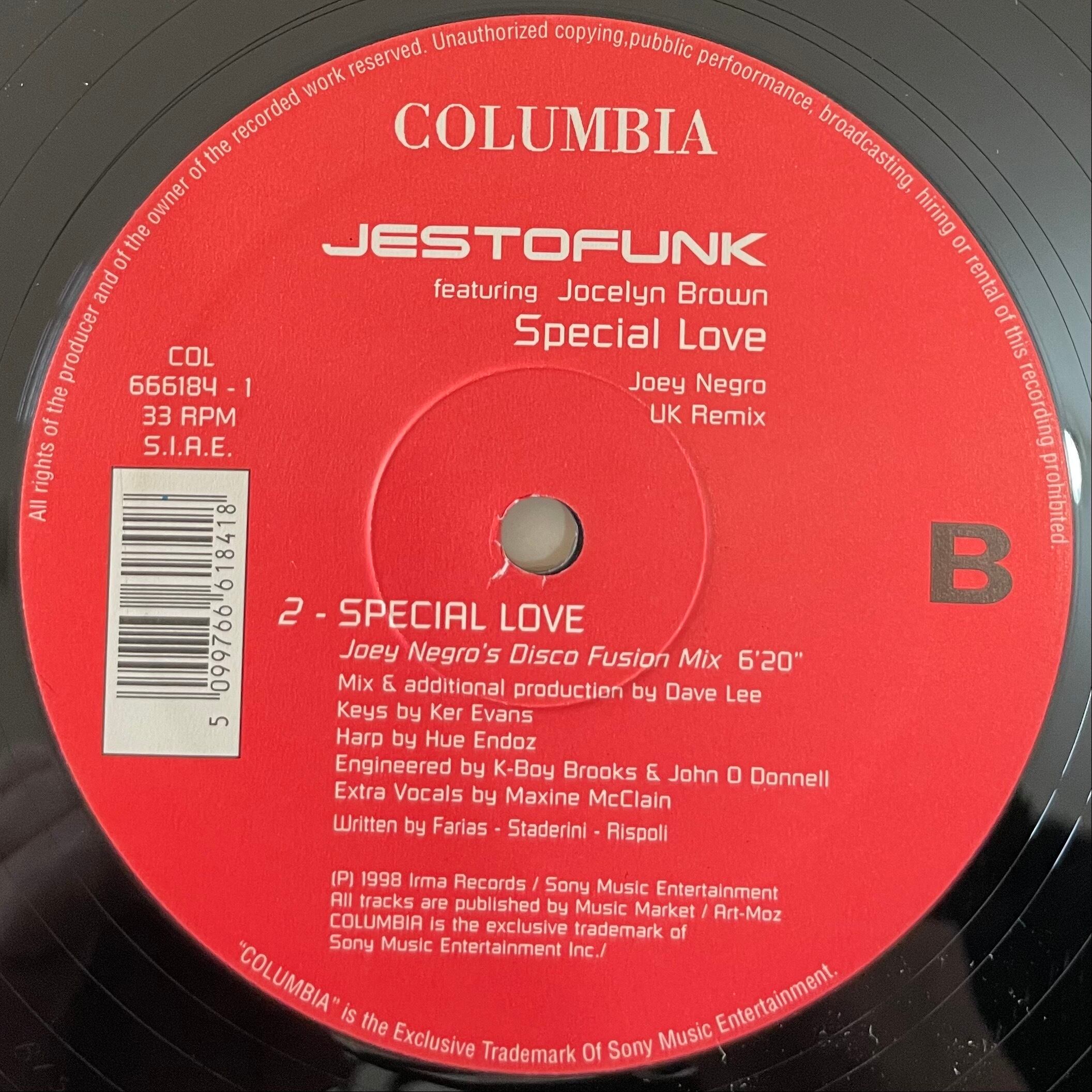 イタリアのアシッド・ジャズ/ファンク・ハウス・バンド Jestofunk とソウル・ディーヴァ Jocelyn Brown(ジョセリン・ブラウン)の強力なタッグによる「Special Love」のリミックス12インチです。