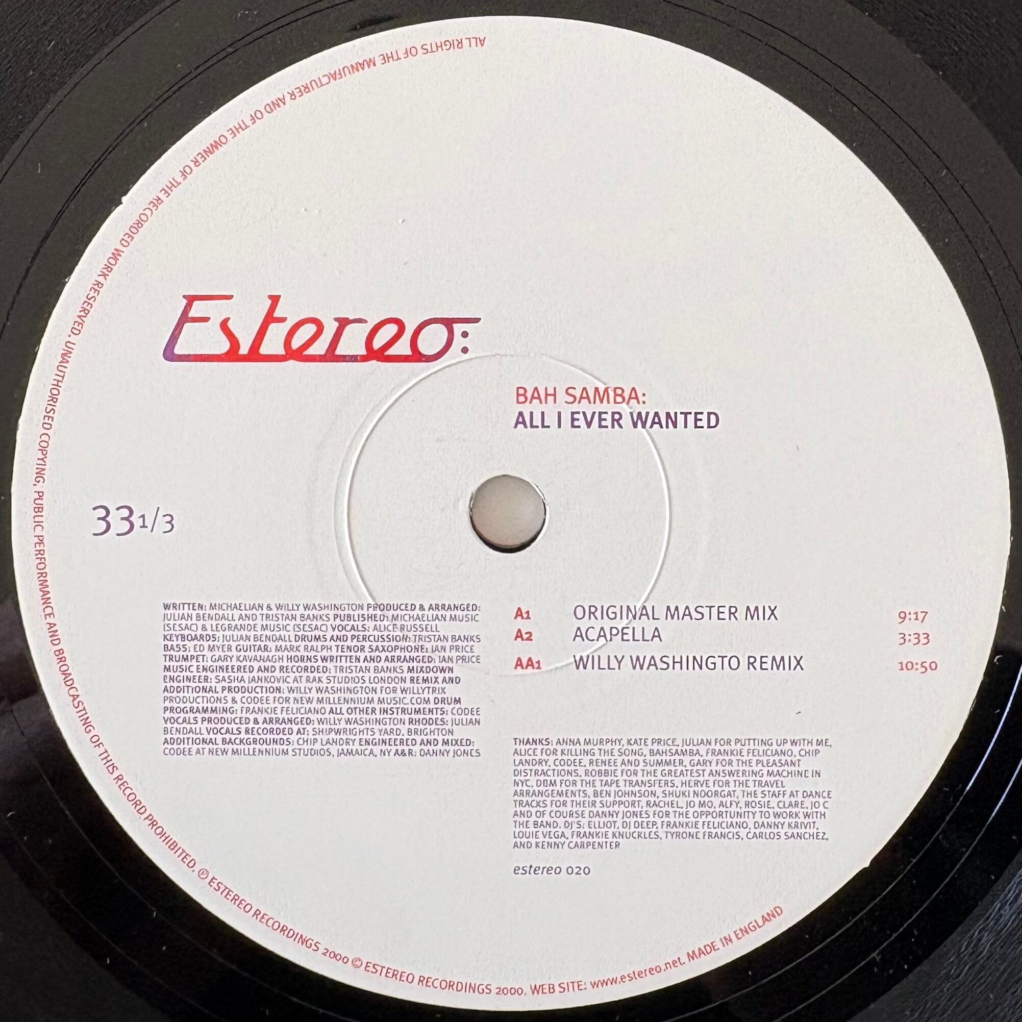 BAH SAMBA / ALL I EVER WANTED(12")