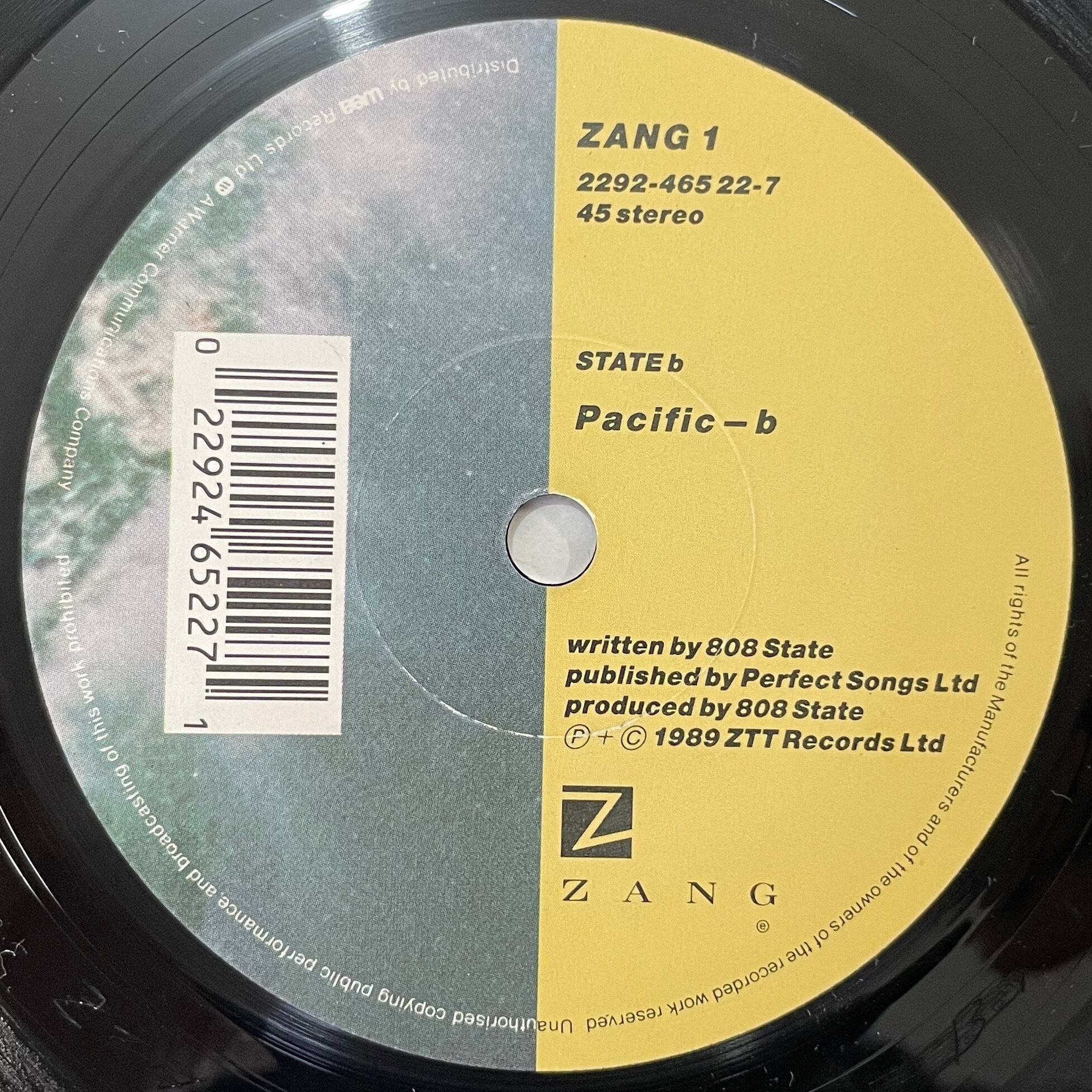 マンチェスター出身テクノバンド"808 STATE"の代表曲"PACIFIC"の7インチ。